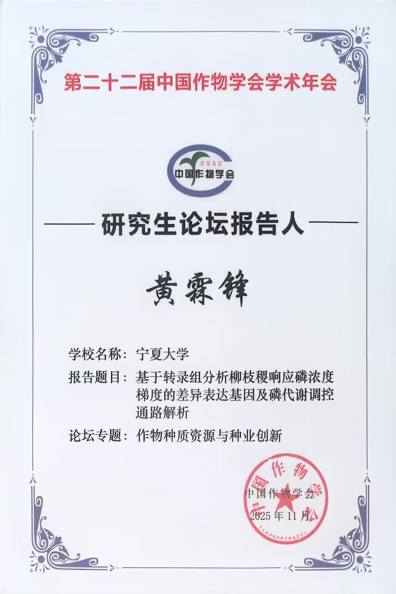 第二十二届中国作物学会学术年会于2025年11月1日至4日在安徽合肥成功举办。本届年会以“科技创新助力农业强国建设”为主题,旨在交流作物学科前沿进展,促进科研合作与人才培养,为我国种业创新与粮食安全提供科技支撑。作物学栽培与耕作团队立足西北旱区农业生产特色,聚焦作物生理生态与绿色生产技术创新,由2位老师率领6名同学组成的团队参会,积极开展学术交流。本次会议设立的四个分会场,涵盖了作物种质资源与种业创新、作物基因挖掘与分子育种、绿色丰产高效栽培与乡村振兴以及信息与智慧农业等核心研究方向。团队成员积极提交会议摘要、墙报,认真听取前沿报告,深入了解了学科最新动态与创新理念。